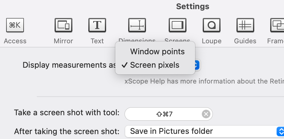 You can open xScope's General settings and change from screen pixels to window points to see how they affect the various tools in xScope.